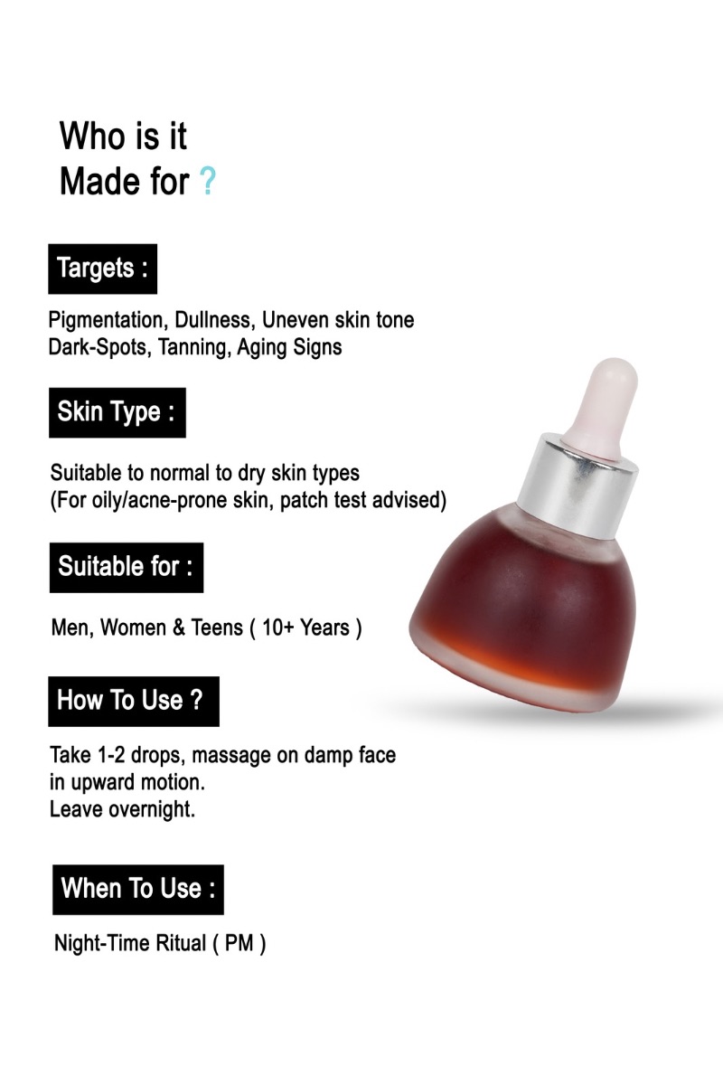 - Reduces pigmentation, blemishes & dark spots