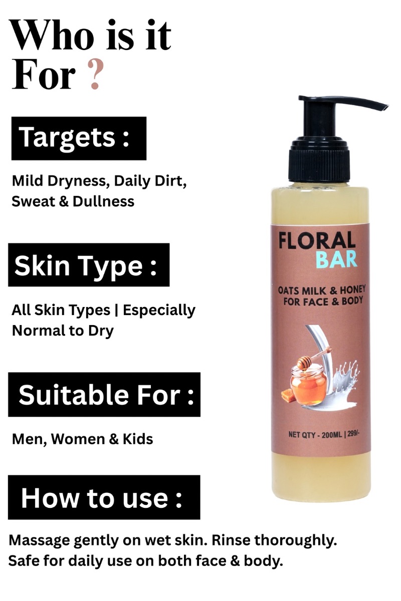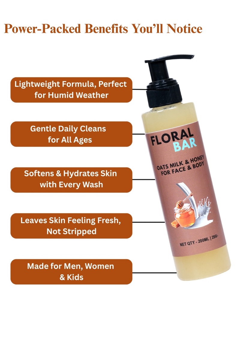 This is not just a wash — it’s daily skin therapy. Infused with the richness of oats milk & pure honey, it cleanses without stripping, leaving your skin soft, supple, and naturally radiant. Perfect for the whole family.
